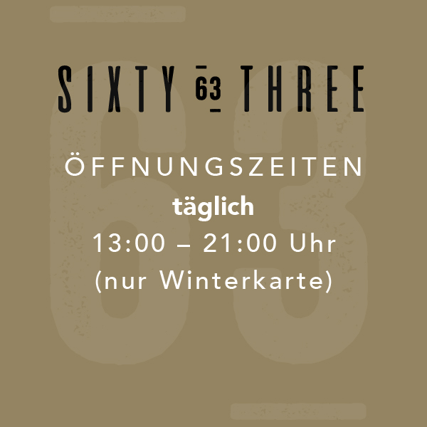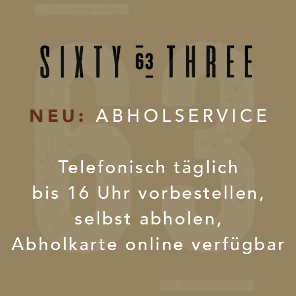 Im SIXTY THREE | 63 trifft Leidenschaft für gute Produkte auf kreatives Handwerk und ungewöhnliche Geschmackskombinationen. Natürlich dürfen dabei die passenden Getränke nicht fehlen, die Barkeeper Dev Götschel mit viel Liebe und jahrelanger Erfahrung für Sie mixt. Gehen Sie bei uns auf kulinarische Entdeckungsreise – darauf freuen wir uns!